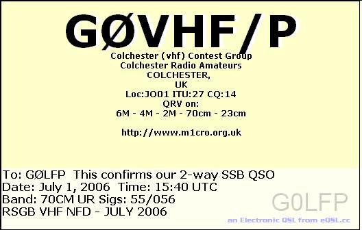 G0VHF-P 20060701 1540 70CM SSB